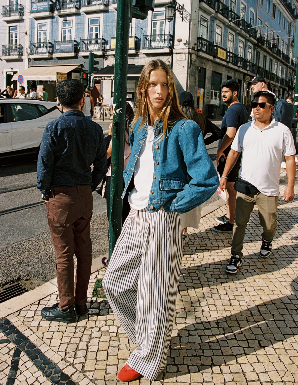 Based on your profile, I'd go with wide-leg trousers and something relaxed on top...